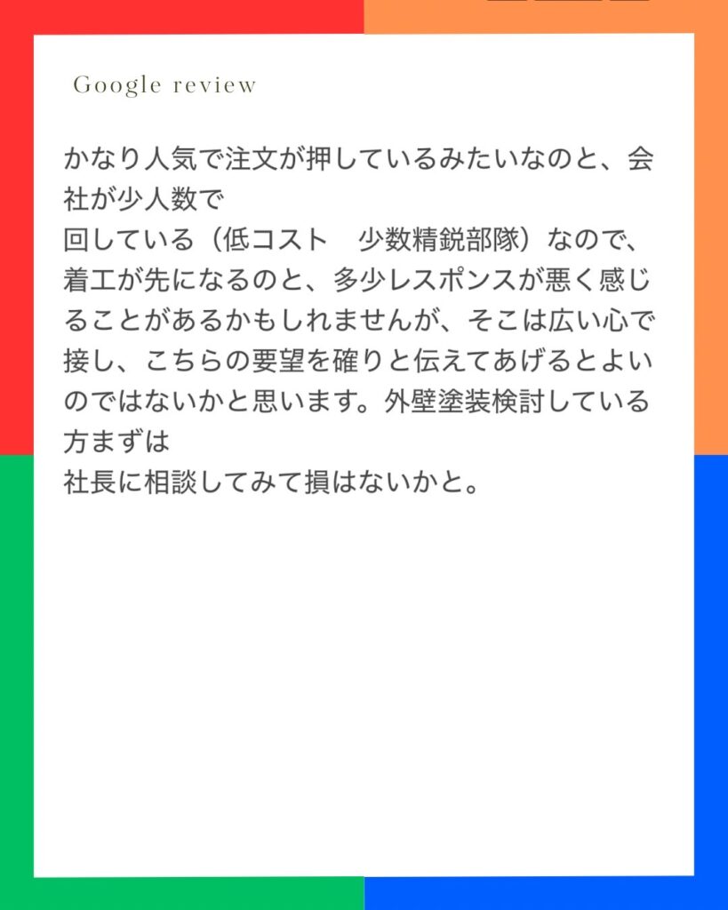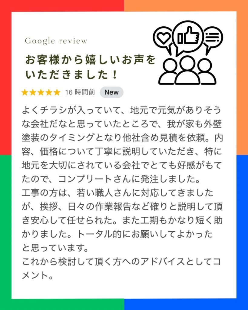 Googleクチコミお客様から嬉しいお声をいただきました。