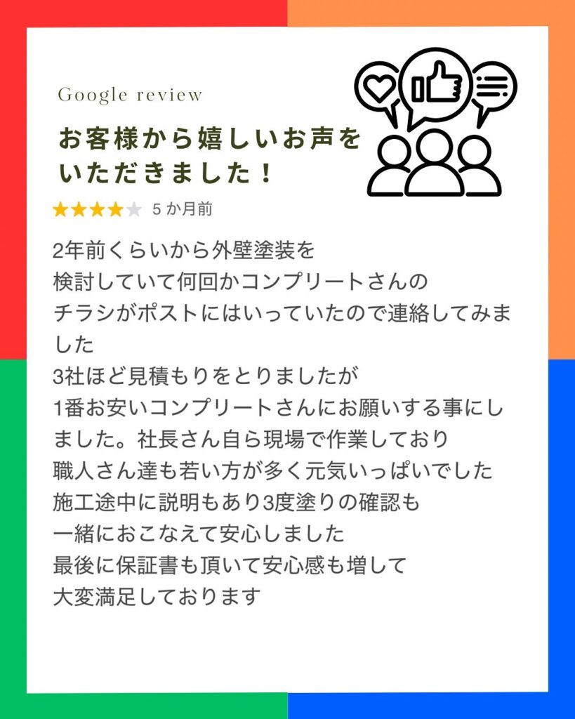 Googleクチコミお客様から嬉しいお声をいただきました。