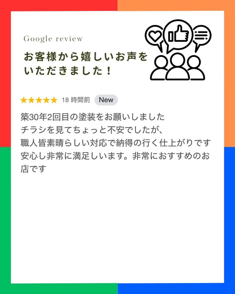 Googleクチコミにてお客様から嬉しいお声をいただきました。