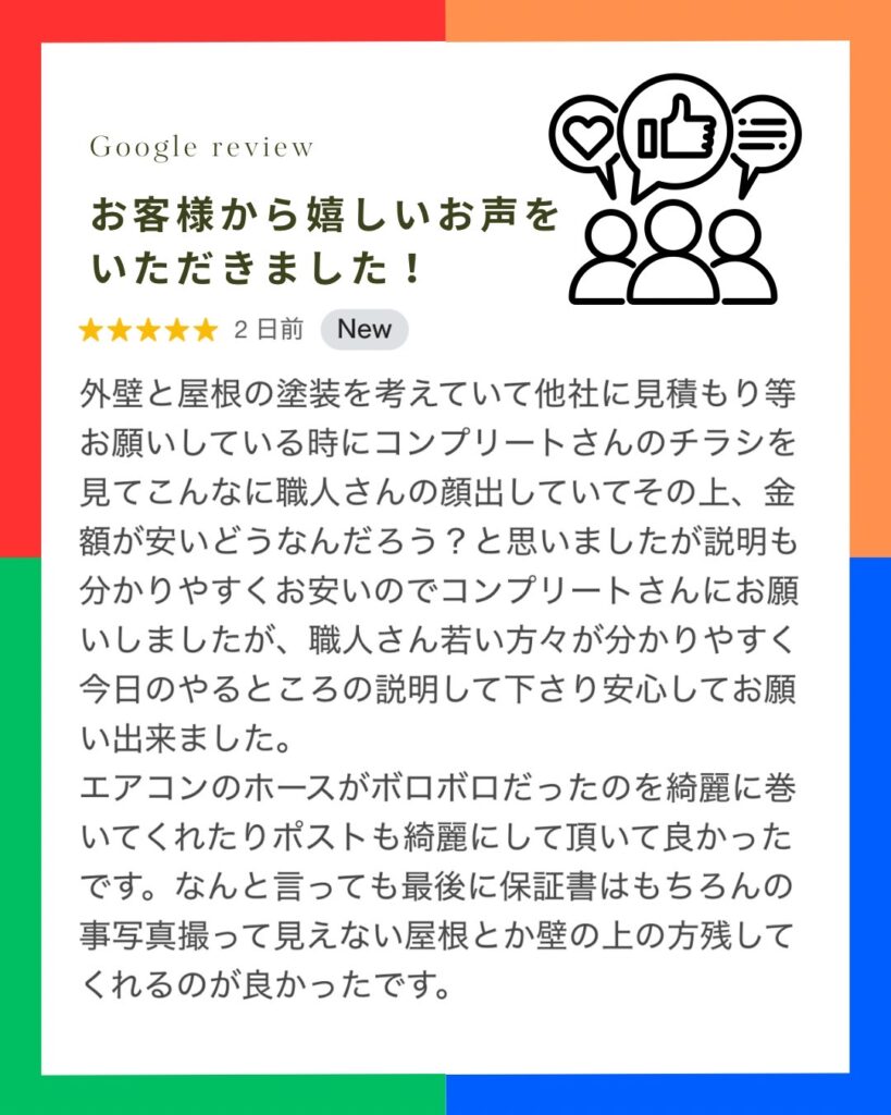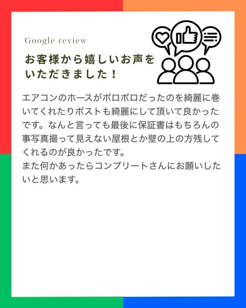Googleクチコミにてお客様から嬉しいお声をいただきました。
