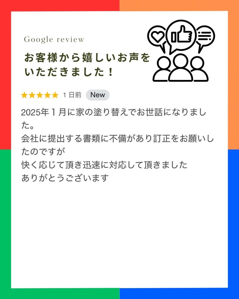 Googleクチコミにてお客様から嬉しいお声をいただきました。