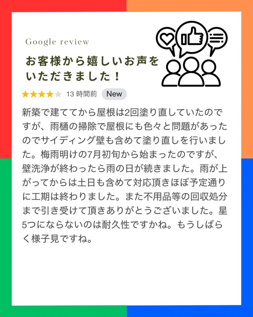 Googleクチコミにてお客様から嬉しいお声をいただきました。
